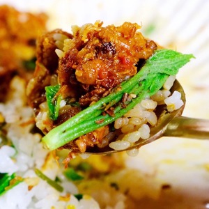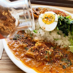 製造ナンバーがNo.1。スパイスカレー研究所ですから、スパイスカレーがもっと美味しく味わえる「ガラムマサラ」の開発が急務です。そんな思いが強ければ強いほど数あるスパイス変数の沼の中でもがいてスパイス漬けとなる日々。ある時お客様から「小さな子供がいるので家庭で辛いスパイスカレーは作れない。何か一振りするだけで甘いカレーがスパイスの香りと辛さに包まれるようなミックススパイスは出来ないか?」というオーダーをいただきました。その言葉で頭の中で混沌としていたスパイスの世界に光が射しました。粉にすると香りが薄くなりやすいスパイスを粗挽きにして、噛むことで口の中にスパイスの香りが出やすくし、華やかな香りのカルダモンを多めに配合しました。これをご自宅のカレーに振りかけるだけで、手軽にスパイスカレーの香りや味わいを楽しめます。ただ、スパイスの世界は奥深いので、あくまでその世界の入口までの先導役です。そこから先が本当の楽しい世界。私達と一緒にその世界を楽しみましょう。